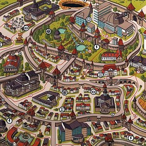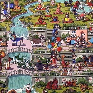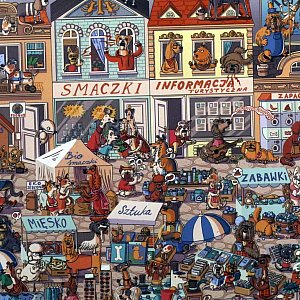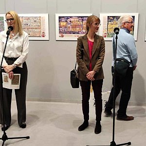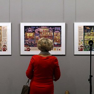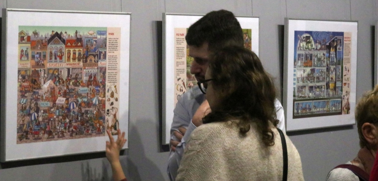„Jest kilka sposobów na zwiedzanie nieznanych terytoriów. Jednym z takich podziałów może być podróż z mapą od punktu do punktu albo pozwolenie sobie na radosne zagubienie. A także wersja pośrednia: patrzenie na mapę, kiedy już się znajdzie w konkretnym miejscu i rozglądanie się, co jeszcze da się zobaczyć. Podobne możliwości daje twórczość Nikoli Kucharskiej. Wielość szczegółów sprawia, że czytelnik staje się takim wędrowcem i musi podjąć decyzję, w jaki sposób zagłębi się w światy proponowane przez artystkę. Najpierw przeczyta tekst, obejrzy ilustracje, a może przyjrzy się szczegółom zaraz po zapoznaniu się z konkretnym fragmentem, a potem kolejnym i kolejnym (cały czas pozostając na tej samej stronie)? Pozwala na to ilość szczegółów zawartych na każdej rozkładówce albo karcie stworzonej przez artystkę, z których wszystkie są tak samo ważne. Ten swoisty chaos nie stanowi jednak bałaganu, łatwo się w nim odnaleźć i iść wyznaczoną ścieżką z przerwami na wejście do niepozornych bram lub tajemniczych uliczek. Pomagają w tym intensywne kolory i wyraźne kontury oraz intensywnie wyrażane emocje wszystkich widocznych postaci” - o wystawie napisała Joanna Szlempo. [FOTORELACJA]20175[/FOTORELACJA]