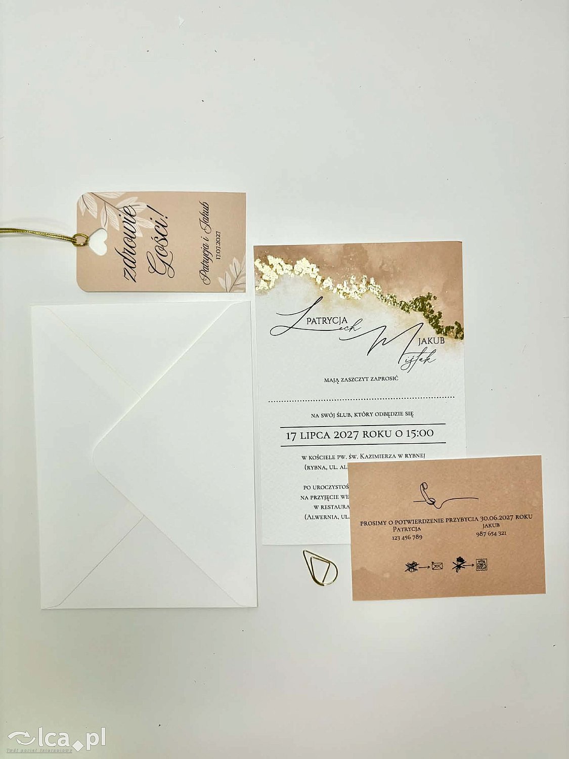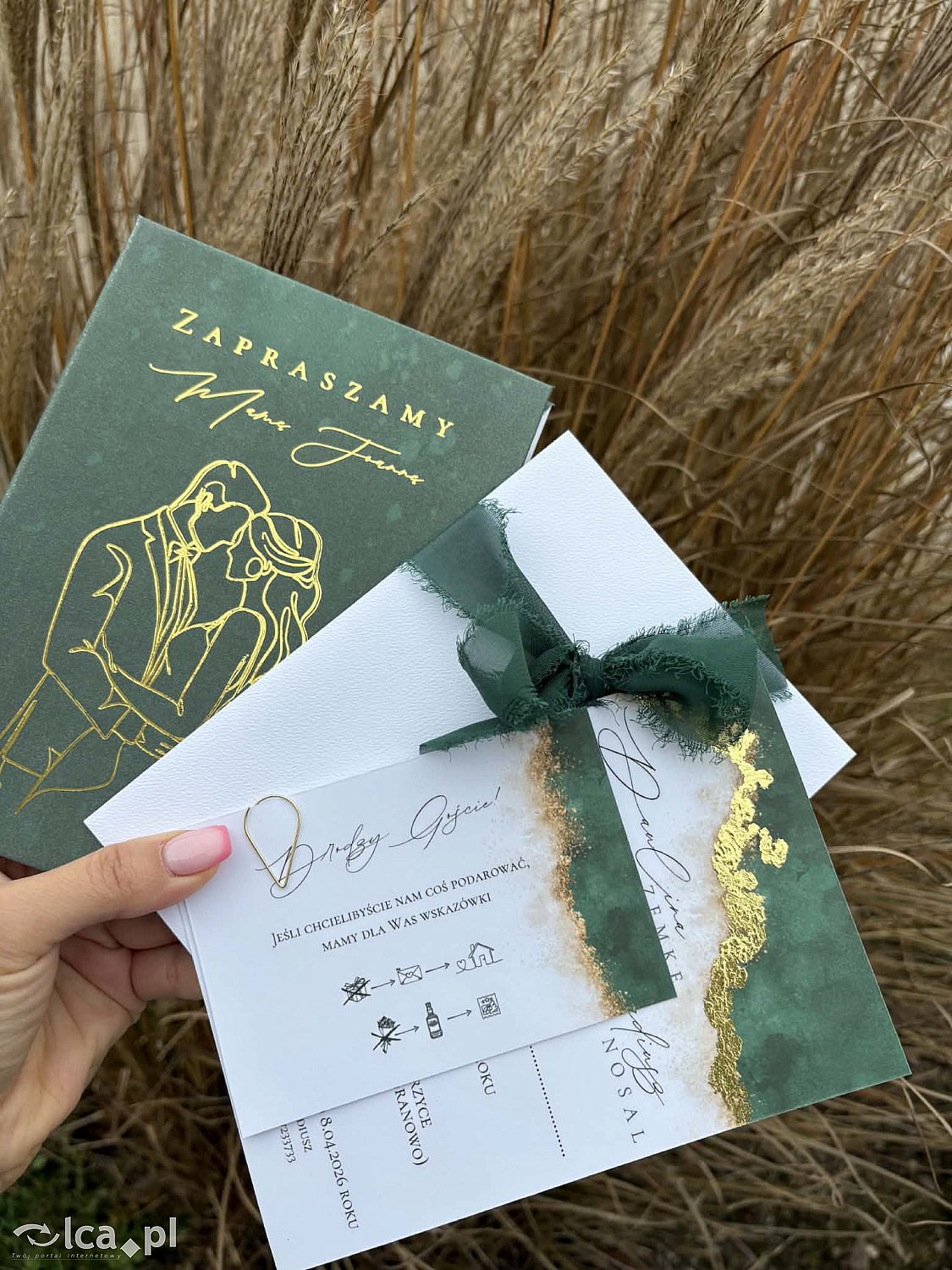 Papeteria w pełni personalizowana. To samo zaproszenie w efekcie końcowym może wyglądać różnie. Wszystko dzięki możliwości bogatej personalizacji dodatków. Począwszy od wyboru papieru, poprzez ułożenie tekstu, złocenia, rwane brzegi, podkładki, kalki, koperty,….., a kończywszy na wstążkach 🥰