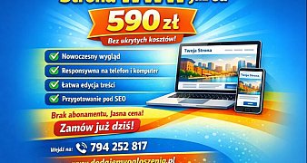 Promuj ogłoszenieChcesz mieć własną stronę internetową, ale nie chcesz wydawać kilku tysięcy złotych? Dobrze trafiłeś. Tworzymy estetyczne i funkcjonalne strony www już ... czytaj więcej