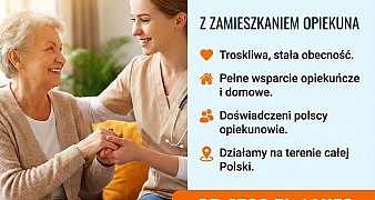 Promuj ogłoszenieOferujemy całodobową opiekę domową z zamieszkaniem. Opiekun mieszka razem z Podopiecznym, zapewniając mu każdego dnia bezpieczeństwo, komfort oraz wsparcie w ... czytaj więcej