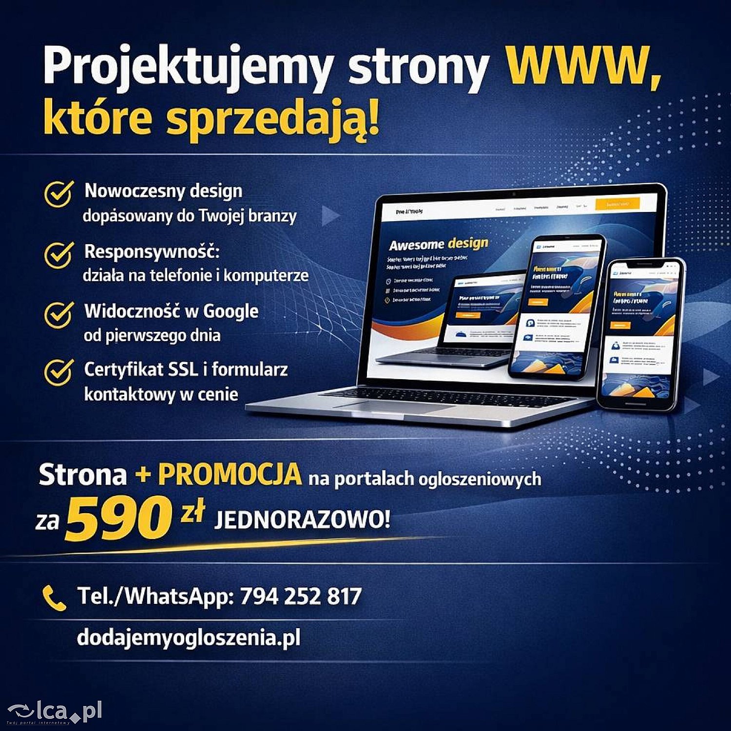 Zajmujemy się też kompleksową promocją firm w internecie. Jeśli chcesz dotrzeć do większej liczby klientów - publikujemy ogłoszenia na dziesiątkach popularnych portali ogłoszeniowych w całej Polsce. Skutecznie, szybko i w przystępnej cenie. Zapytaj nas o szczegóły!