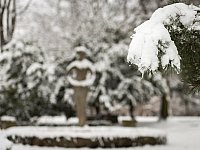 Spadł śnieg i legnicki park otulił się w zimową szatę.